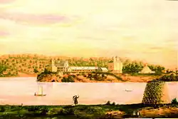 The 1804 treaty allowed the tribes to continue using the ceded land until it was sold to American colonists by the U.S. government.[10] For the next two decades, Sauks continued to live at Saukenuk, their primary village, which was located near the confluence of the Mississippi and Rock Rivers.[11] In 1828, the U.S. government finally began to have the ceded land surveyed for colonists. Indian agent Thomas Forsyth informed the Sauks that they should vacate Saukenuk and their other settlements east of the Mississippi.[12]