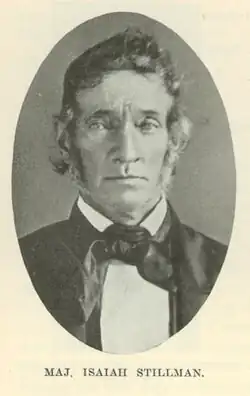 On May 12, learning that Black Hawk's band was only twenty-five miles away, eager militiamen led by Major Isaiah Stillman left Whiteside's encampment, making another camp on a tributary of the Rock River later named Stillman Valley after him. Seeing a small party of natives with a red flag, Major Samuel Hackelton and some men pursued without waiting for orders, and Hackelton killed a native before returning to Whiteside's camp with the news.[80] However, Black Hawk and others were nearby, and near dusk on May 14 attacked Stillman's party in what became known as the Battle of Stillman's Run. Accounts of the battle vary.[83] Black Hawk later stated that he sent three men under a white flag to parley, but the Americans imprisoned them and opened fire on a second group of emissaries who followed. Some militiamen claimed they never saw a white flag; others believed that the flag was a ruse the Indians used to set an ambush.[84] All accounts agree that Black Hawk's warriors attacked the militia camp at dusk, that the much more numerous militia were routed, and the survivors straggled into Whiteside's camp. To Black Hawk's surprise, his forty warriors killed twelve Illinois militiamen, and suffered only three fatalities.[85]