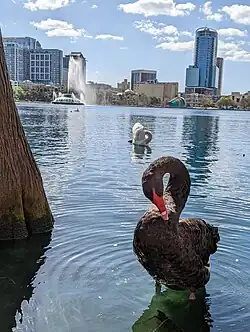 One of several black swans at Lake Eola Park in Orlando, Florida, USA