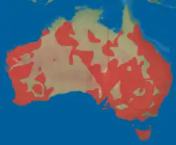 The black swan is common in the wetlands of southwestern and eastern Australia and adjacent coastal islands. In the south west its range encompasses an area between North West Cape, Cape Leeuwin and Eucla; while in the east it covers a large region bounded by the Atherton Tableland, the Eyre Peninsula and Tasmania, with the Murray–Darling basin supporting very large populations of black swans.[3][10] It is uncommon in central and northern Australia.