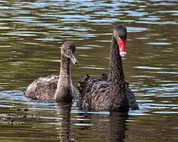 29. ^ Braithwaite, L. W. (1981). "Ecological studies of the Black Swan III – Behaviour and social organization". Australian Wildlife Research. 8 (1): 134–146. Bibcode:1981WildR...8..135B. doi:10.1071/WR9810135.