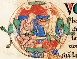 Whilst the majority of blacksmiths named in Britain in the medieval period were men, some women also worked as smiths.[11] For example, in 1346 Katherine Le Fevre was appointed by Edward III to ‘keep up the king’s forge within the Tower and carry on [its] work … receiving the wages pertaining to the office’.[11] Another example is of Alice la Haubergere (Mail-maker) who owned an armour shop and worked as an armourer in Cheapside.[11] In York in 1403 Agnes Hecche was left her father's mail-making equipment in his will, and took over the family business with her brother.[11] Others included the bell founder Johanna Hill, the cutler Agnes Cotiller and Eustachia l’Armurer.[11]