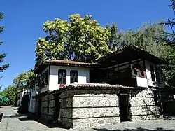 A Bulgarian quarter called Varosha was formed during the Bulgarian National Revival, with many of its typical houses and the Church of the Presentation of the Mother of God from 1844 being preserved to this day. In the 1830s, the French geologist Ami Boué passed by here and described Dzhumaya as a town of 3,000 to 4,000 inhabitants, where a hereditary voivode lived. The mosques prove that there were many Turks and Pomaks along with the Bulgarians. The streets are paved and very irregular. According to him, the Bulgarians call the town Shuma (from "shuma" - forest).[9] Victor Grigorovich visited the town in 1845.[10] A chitalishte was founded in 1866. Bulgarian scholar Georgi Strezov visited the town in 1891. According to him, there were 1200 houses.[11]