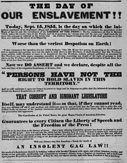 5. ^ "Bleeding Kansas". Kansapedia. Kansas Historical Society. 2016. Archived from the original on January 16, 2021. Retrieved January 17, 2021.
