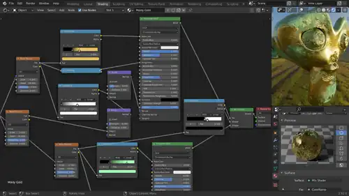 Blender users can create their own nodes using the Open Shading Language (OSL); this allows users to create stunning materials that are entirely procedural, which allows them to be used on any objects without stretching the texture as opposed to image-based textures which need to be made to fit a certain object. (Note that the shader nodes editor is shown in the image, although mostly correct, has undergone a slight change, changing how the UI is structured and looks.[66]