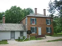 After the Treaty of Traverse des Sioux in 1851, the territory west of the Mississippi River, including Bloomington, was opened to settlers. At this time, native Dakota villages such as Titanka Tannina were abandoned. A group of pioneers settled in Bloomington, including the Goodrich, Whalon, and Ames families. They named the area Bloomington after the city they were from, Bloomington, Illinois. Most early jobs were in farming, blacksmithing, and flour milling.[16] The Oxborough family, who came from Canada, built a trading center on Lyndale Avenue and named it Oxboro Heath. Today, the Clover Shopping Center rests near the old trading center site and the nearby Oxboro Clinic is named after them. The Baliff family opened a grocery and general store at what is today Penn Avenue and Old Shakopee Road, and Hector Chadwick, after moving to the settlement, opened a blacksmith shop near the Bloomington Ferry. In 1855, the first public school for all children was opened in Miss Harrison's house, with the first school, Gibson House, built in 1859.[16] On May 11, 1858, the day Minnesota was admitted into the union and officially became a state, 25 residents incorporated the Town of Bloomington. By 1880, the population had grown to 820.[17] In 1892, the first town hall was built at Penn and Old Shakopee Road. By then, the closest Dakota to Minneapolis lived at the residence of Gideon Pond.[14]