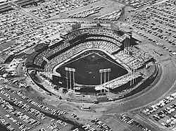 In 1953, Bloomington changed from a township to a village form of government. This more professional approach to government was accompanied by open council meetings, land use plans, and published budgets. The effects of this new form of government began immediately, first with the formation of the city police department (at a cost of $2 per taxpayer) and then with the first parkland acquisition. Both Bush Lake Beach and Moir Park were established at a cost of one dollar to each residence. Today, about 1/3 of the city's land area is devoted to city and regional parks, playgrounds, and open space.[18] In 1956, the first city land-use plan was initiated with the construction of Interstate 35W and Metropolitan Stadium.