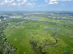 About a third of the city is permanently reserved for park purposes, including two large natural areas—the Minnesota Valley's wetlands (controlled by the City and the United States Fish and Wildlife Service) and the Hyland Lake Park Reserve (controlled by the Three Rivers Park District).