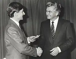- ^ "Hawke and Keating bury the hatchet". ABC News. Australia. 13 July 2008. Archived from the original on 10 November 2012. Retrieved 25 April 2010.