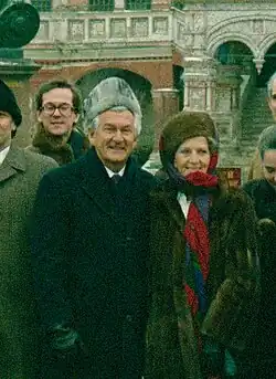He was elected ACTU President in 1969 on a modernising platform by the narrow margin of 399 to 350, with the support of the left of the union movement, including some associated with the Communist Party of Australia.[38] He later credited Ray Gietzelt, General Secretary of the FMWU, as the single most significant union figure in helping him achieve this outcome.[39] Questioned after his election on his political stance, Hawke stated that "socialist is not a word I would use to describe myself", saying instead his approach to politics was pragmatic.[40] His commitment to the cause of Jewish Refuseniks purportedly led to a planned assassination attempt on Hawke by the Popular Front for the Liberation of Palestine, and its Australian operative Munif Mohammed Abou Rish.[41]