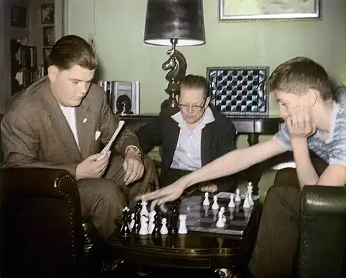 Fischer played thousands of blitz and offhand games with Collins and other strong players, studied the books in Collins's large chess library, and ate almost as many dinners at Collins's home as his own.[44][45][46]
