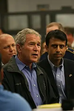 In 2005, Jindal criticized Bush's budget for not calling for enough spending cuts.[45] He warned of the growth of Medicaid saying "Congress may act without them...there seems to be growing momentum that the status quo is not defensible."[46] Jindal praised Bush's leadership on social security reform, saying "The administration has a lot more work to do to continue educating the American people about the very serious challenges facing Social Security."[47]