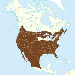 The historical range of the bobcat was from southern Canada, throughout the United States, and as far south as the Mexican state of Oaxaca, and it still persists across much of this area. In the 20th century, it was thought to have lost territory in the US Midwest and parts of the Northeast, including southern Minnesota, eastern South Dakota, and much of Missouri, mostly due to habitat changes from modern agricultural practices.[28][38][45] While thought to no longer exist in western New York and Pennsylvania, multiple confirmed sightings of bobcats (including dead specimens) have been recently reported in New York's Southern Tier and in central New York, and a bobcat was captured in 2018 on a tourist boat in Downtown Pittsburgh, Pennsylvania.[48][49] In addition, bobcat sightings have been confirmed in northern Indiana, and one was killed near Albion, Michigan, in 2008.[50] In early March 2010, a bobcat was sighted (and later captured by animal control authorities) in a parking garage in downtown Houston.[51] By 2010, bobcats appear to have recolonized many states, occurring in every state in the contiguous 48 except Delaware.[1]