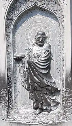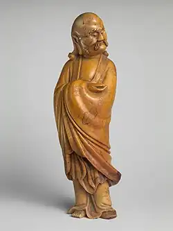 Bodhidharma was a semi-legendary Buddhist monk who lived during the 5th or 6th century CE.[1] He is traditionally credited as the transmitter of Chan Buddhism to China, and is regarded as its first Chinese patriarch.[a] He is also popularly regarded as the founder of Shaolin kung fu,[2][3][4][5] an idea popularized in the 20th century,[4][5][2] but based on the 17th century Yijin Jing and the Daoist association of daoyin gymnastics with Bodhidharma.[3][2][b][c]