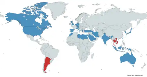In February 2007, the Royal Netherlands Air Force became the first international customer of the CH-47F model, expanding their Chinook fleet to 17.[16] On 10 August 2009, Canada signed a contract for 15 extensively modified and upgraded CH-47Fs for the Canadian Forces, later delivered in 2013–2014 with the Canadian designation CH-147F.[11][17] On 15 December 2009, Britain announced its Future Helicopter Strategy, including the purchase of 24 new CH-47Fs to be delivered from 2012.[18] Australia ordered seven CH-47Fs in March 2010 to replace its six CH-47Ds between 2014 and 2017.[19][20] In September 2015, India approved purchase of 15 CH-47F Chinooks.[21] On 7 November 2016, Singapore announced that the CH-47F would replace its older Chinooks, which had been in service since 1994, enabling the Republic of Singapore Air Force to meet its requirements for various operations, including search-and-rescue, aeromedical evacuation, and humanitarian assistance and disaster relief operations.[22] The German government announced in June 2022 that the CH-47F Block 2 was selected as the winner of its heavy helicopter program to replace its Sikorsky CH-53G Sea Stallion fleet.[23][24] Germany is planning to buy sixty airframes to boost heavy lift capability.[25]