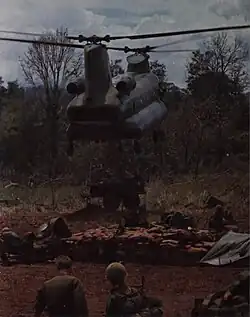 The most spectacular mission in Vietnam for the Chinook was the placing of artillery batteries in perilous mountain positions inaccessible by any other means, and then keeping them resupplied with large quantities of ammunition.[2] The 1st Cavalry Division found that its CH-47s were limited to a 7,000-pound (3,200 kg) payload when operating in the mountains, but could carry an additional 1,000 pounds (450 kg) when operating near the coast.[2]