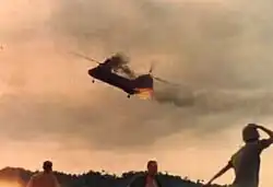 During the 1972 Easter Offensive, Sea Knights saw heavy use to convey US and South Vietnamese ground forces to and around the front lines.[18] Marine CH-46s participated in Operation Frequent Wind, the evacuation of Saigon, in April 1975 and the last helicopter to leave the roof of the US embassy was a CH-46 of HMM-164.[19] By the end of US military operations in Vietnam, over a hundred Sea Knights had been lost to enemy fire.[20]