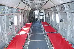 The Labrador was fitted with a watertight hull for marine landings, a 5,000 kilogram cargo hook and an external rescue hoist mounted over the right front door. It featured a 1,110 kilometer flying range, emergency medical equipment and an 18-person passenger capacity.[39] In multiple instances throughout the 1970s and 1980s, this increased range provided the capability of the CH-113 to provide assistance to U.S. Coast Guard (USCG) missions or perform long range medevacs over distances the USCG helicopters at the time simply could not reach.[40]