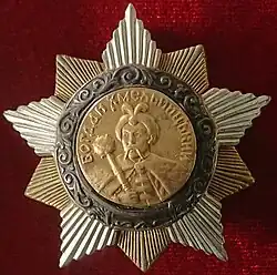 In Ukraine, Khmelnytsky is generally regarded as a national hero.[51][52][53] A city[54] and a region of the country bear his name. His image is prominently displayed on Ukrainian banknotes and his monument in the centre of Kyiv is a focal point of the Ukrainian capital. There have also been several issues of the Order of Bohdan Khmelnytsky – one of the highest decorations in Ukraine and in the former Soviet Union.
