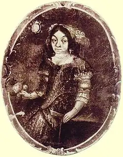 Khmelnytsky was probably born in the village of Subotiv, near Chyhyryn in the Crown of the Kingdom of Poland at the estate of his father Mykhailo Khmelnytsky.[15] He was born into Ukrainian lesser nobility.[16] His father was a courtier of Great Crown Hetman Stanisław Żółkiewski, but later joined the court of his son-in-law Jan Daniłowicz, who in 1597 became starosta of Korsuń and Chyhyryn and appointed Mykhailo as his deputy in Chyhyryn (pidstarosta). For his service, he was granted a strip of land near the town, where Mykhailo set up a khutor Subotiv. According to 18th century History of Ruthenians, Khmelnytsky's mother a dauther of Cossack Herman Bohdan Różyński from princely Ruthenian - Lithuanian family. There has been controversy as to whether Bohdan and his father belonged to the Szlachta (Polish term for noblemen).[17] Some sources state that in 1590, his father, Mykhailo, was appointed as a sotnyk for the Korsun-Chyhyryn starosta Jan Daniłowicz, who continued to colonize the new Ukrainian lands near the Dnieper river.[18]