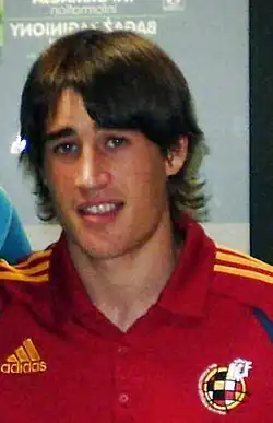 He made his full Spanish debut on 10 September 2008 (at 18 years and 13 days) under Vicente del Bosque against Armenia, where he came on during the last ten minutes for Santi Cazorla and played on the right wing for his only senior cap.[102]