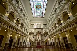 By the late 16th century, Bolivian silver was an important source of revenue for the Spanish Empire.[35] A steady stream of natives served as labor force under the brutal, slave conditions of the Spanish version of the pre-Columbian draft system called the mita.[36] Charcas was transferred to the Viceroyalty of the Río de la Plata in 1776 and the people from Buenos Aires, the capital of the Viceroyalty, coined the term "Upper Peru" (Spanish: Alto Peru) as a popular reference to the Royal Audiencia of Charcas. Túpac Katari led the indigenous rebellion that laid siege to La Paz in March 1781,[37] during which 20,000 people died.[38][39] As Spanish royal authority weakened during the Napoleonic Wars, sentiment against colonial rule grew.