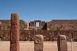 The Aymara community grew to urban proportions between AD 600 and AD 800, becoming an important regional power in the southern Andes from La Paz. According to early estimates, the city covered approximately 6.5 square kilometers (2.5 square miles) at its peak, and had between 15,000 and 30,000 inhabitants.[26] However, in 1996, satellite imaging was used to map the extent of preserved suka kollus (flooded raised fields) across the three primary valleys of Tiwanaku, with the results suggesting a population-carrying capacity of anywhere between 285,000 and 1,482,000 people.[27][28]
