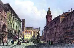 Piazza del Nettuno in 1855, looking towards Piazza Maggiore