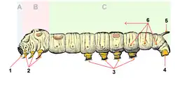 - ^ a b Singh, Amit; Kango-Singh, Madhuri; Parthasarathy, R.; Gopinathan, K. P. (April 2007). "Larval legs of mulberry silkworm Bombyx mori are prototypes for the adult legs". Genesis. 45 (4): 169–176. doi:10.1002/dvg.20280. ISSN 1526-954X. PMID 17417803. S2CID 7171141.