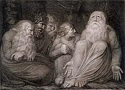 His three friends, Eliphaz the Temanite, Bildad the Shuhite, and Zophar the Naamathite, visit him, accuse him of sinning, and tell him that his suffering was deserved. Job responds with scorn, calling his visitors "miserable comforters".[29] Job asserts that since a just God would not treat him so harshly, patience in suffering is impossible, and the Creator should not take his creatures so lightly, to come against them with such force.[30]