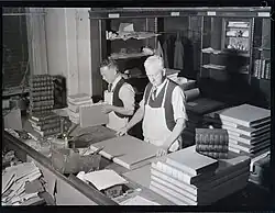 Archibald Leighton is generally credited with having introduced cotton-based book cloth to wholesale bookbinding, which was of great importance to the economy and global expansion of book sales in the 19th century.[28] The new material was much longer lasting than paper "boards" and significantly cheaper than the more elegant leather bindings. As the century progressed, fine quality mass produced covers emerged, often with bright colours and textures, introduced by Archibald Winterbottom & Sons, which dominated bookbinding for a century.[29]