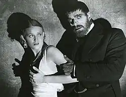 Karloff joined the Jeanne Russell Company in 1911 and performed in towns including Kamloops (British Columbia) and Prince Albert (Saskatchewan). After the devastating tornado in Regina on 30 June 1912, Karloff, who was in the midst of an engagement at the Regina Theatre, and other performers helped with clean-up efforts.[16][17] He later took a job as a railway baggage handler and joined the Harry St. Clair Company that performed in Minot, North Dakota, for a year in an opera house above a hardware store.