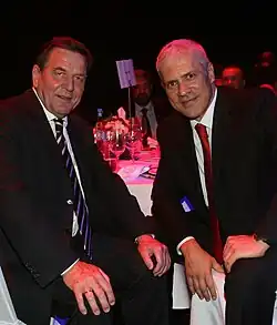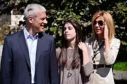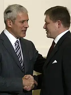 After being pressured by protests that were organised by Nikolić's Serbian Progressive Party in 2011, Tadić announced that snap elections will be held in 2012.[3][4] He lost in the second round to Nikolić, who succeeded him as president of Serbia. Tadić was replaced by Dragan Đilas as the president of DS in November 2012, after which Tadić unsuccessfully sought to become the party's president again in 2014. He then left DS and formed the New Democratic Party, later renamed to Social Democratic Party, which remained a parliamentary party up to the 2020 election, which it boycotted. A self-described liberal,[5] he is an advocate of closer ties with the European Union (EU), supports the accession of Serbia to the European Union,[6] and is widely regarded as pro-Western-orientated,[7][8][9] while favouring balanced relations with Russia, China, United States, and the European Union.[10]
