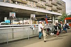 On 16 September 1989, during a tour of the United States, Yeltsin toured a medium-sized grocery store (Randalls) in Texas.[98] Leon Aron, quoting a Yeltsin associate, wrote in his 2000 biography, Yeltsin, A Revolutionary Life (St. Martin's Press): "For a long time, on the plane to Miami, he sat motionless, his head in his hands. 'What have they done to our poor people?' he said after a long silence." He added, "On his return to Moscow, Yeltsin would confess the pain he had felt after the Houston excursion: the 'pain for all of us, for our country so rich, so talented and so exhausted by incessant experiments'." He wrote that Mr. Yeltsin added, "I think we have committed a crime against our people by making their standard of living so incomparably lower than that of the Americans." An aide, Lev Sukhanov, was reported to have said that it was at that moment that "the last vestige of Bolshevism collapsed" inside his boss.[99] In his autobiography, Against the Grain: An Autobiography, written and published in 1990, Yeltsin hinted in a small passage that after his tour, he made plans to open his line of grocery stores and planned to fill it with government-subsidized goods to alleviate the country's problems.