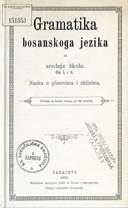 The Austro-Hungarian administration of the joint Finance Minister Béni Kállay promoted the idea of a non-confessional unitary "Bosniak" identity that would encompass all inhabitants (more akin to "Bosnism"), going even as far as prohibiting Bosnian cultural associations from using the terms "Serb" and "Croat" in their names in the 1880s. In 1883, they officially called the vernacular language "Bosnian". The policy placed its hopes mainly in the Catholic community (which was not yet as deeply entrenched in Croat nationalism as the Orthodox were in the Serb one) and the Muslim community (which sought to distance itself from the Ottoman Empire). In reality, only a small circle of Muslim notables at the time favoured such a unitary nation. The movement's foremost proponent was Mehmed Kapetanović.[91] Although it failed, the Bosniak ideology promoted by the Austrian-Hungarian authorities laid the foundation for the modern Bosniak identity. By emphasising the pre-Ottoman past, it created a founding myth —a theory of the massive conversion of medieval Bogumils to Islam upon the Ottoman conquest —offering a historical continuity and rationale for their presence in Europe.[92] Before this, Bosnian Muslims lacked any cultural ties to medieval Bosnia.[88]