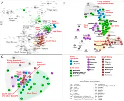 177. ^ a b Kushniarevich, A; Utevska, O; Chuhryaeva, M; et al. (2015). "Genetic Heritage of the Balto-Slavic Speaking Populations: A Synthesis of Autosomal, Mitochondrial and Y-Chromosomal Data". PLOS ONE. 10 (9). e0135820. Bibcode:2015PLoSO..1035820K. doi:10.1371/journal.pone.0135820. PMC 4558026. PMID 26332464.