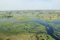 Since raising livestock has been profitable for the people of Botswana, they continue to exploit the land with dramatically increasing numbers of animals. From 1966 to 1991, the livestock population grew from 1.7 million to 5.5 million.[71] Similarly, the human population has increased from 574,000 in 1971 to 1.5 million in 1995, a 161% increase in 24 years.[72] Environmentalists report that the Okavango Delta is drying up due to increased livestock grazing.[73] The Okavango Delta is one of the major semi-forested wetlands in Botswana and one of the largest inland deltas in the world; the ecosystem is crucial to the survival of many animals.[73]