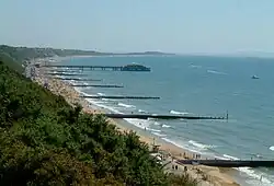 The town is a population centre within the South East Dorset conurbation and is known for its seven-mile stretch of golden sand, with well-known spots including Alum Chine Beach, Durley Chine Beach, and Bournemouth Central Beach. The shoreline continues westward and gradually merges into the affluent Sandbanks area and Poole. Alongside tourism, financial services now play a significant role in the local economy.