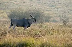 The present genera of Alcelaphinae appeared in the Pliocene. The extinct Alcelaphine genus Paramularius, which was the same in size as the hartebeest, is believed to have come into being in the Pliocene, but became extinct in the middle Pleistocene.[6] Several genera of Hippotraginae are known since the Pliocene and Pleistocene. This subfamily appears to have diverged from the Alcelaphinae in the latter part of early Miocene.[19] The Bovinae are believed to have diverged from the rest of the Bovidae in the early Miocene.[20] The Boselaphini became extinct in Africa in the early Pliocene; their latest fossils were excavated in Langebaanweg (South Africa) and Lothagam (Kenya).[21]