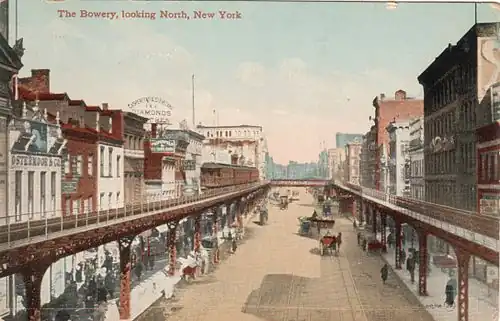 18. ^ Moscow, Henry (1978). The Street Book: An Encyclopedia of Manhattan's Street Names and Their Origins. New York: Hagstrom Company. ISBN 978-0-8232-1275-0.; A highly colored and disapproving panorama of the dissolute and lively Bowery on a Sunday is offered by Smith 1869, pp. 214–18.