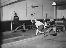 In 1455, lawn bowling lanes in London were first roofed-over, turning bowling into an all-weather game.[9] In Germany, they were called kegelbahns and were often attached to taverns and guest houses.