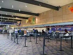 The airport has one terminal known as Terminal A with two concourses: East Concourse (Gates 1–12) and West Concourse (Gates 18–30). The East Concourse has 12 gates and houses the following airlines: Aer Lingus, Delta, Frontier, JetBlue, Southwest, Sun Country. The West Concourse has 13 gates and houses the following airlines: American, Breeze, United. A 2024 expansion project will see the construction of a new baggage screening facility, as well as the construction of two additional gates on the west side of the terminal – plus the relocation of the existing Gate 20 to the expanded area, for a total of three additional gates. After the renovation, BDL will have a total of 25 gates and one FIS international arrivals gate.[36]