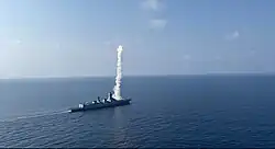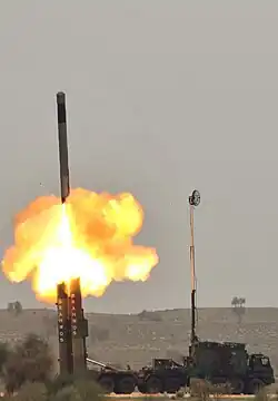 BrahMos was first test-fired on 12 June 2001 from the Integrated Test Range (ITR), Chandipur in a vertical launch configuration. On 14 June 2004, another test was conducted at ITR and BrahMos was fired from a mobile launcher.[45] On 5 March 2008, the land attack version of the missile was fired from the destroyer INS Rajput and the missile hit and destroyed the right target among a group of targets.[46][47] The vertical launch of BrahMos was conducted on 18 December 2008 from INS Ranvir.[48] The BrahMos I Block-I for the army was successfully tested with new capabilities in the deserts of Rajasthan, at a test range near Pokharan in December 2004 and March 2007.[49] During a user trial on 20 January 2009, BrahMos was tested with a new navigation system but it failed to hit the target. BrahMos Aerospace Corporation's director Dr A. Sivathanu Pillai said, "The missile performance was absolutely normal until the last phase, but the missile missed the target, though it maintained the direction." and that "The problem was in the software, not hardware".[50][51] The Defence Research and Development Organisation (DRDO) said that there were "small hitches" in the last stage of the test firing due to delay in input of satellite navigation input to the inertial navigation system, the missile travelled for 112 seconds instead of the slated 84 seconds and fell 7 km away from the target.[52] According to BrahMos Corporation, another test of the new missile was to be conducted within one month,[53] but it was eventually conducted on 4 March 2009 and was deemed successful.[54] BrahMos was test-fired again on 29 March 2009. For the test, the missile had to identify a building among a cluster of buildings in an urban environment. BrahMos successfully hit the intended target in two and a half minutes of launch. According to official sources, "The new seeker is unique and would help us to hit our targets, which are insignificant in terms of size, in a cluster of large buildings. India is now the only nation in the world with this advanced technology".[55] After the third test, Lt Gen. Noble Thamburaj, said that the Indian Army wanted the BrahMos to achieve high standards of accuracy and congratulated the scientists on behalf of the Indian Army.[56] The Indian Army confirmed that the test was successful and the army is satisfied with the missile. This marking the completion of the development phase of BrahMos Block-II, and it was ready for induction.[57][58][59][60]