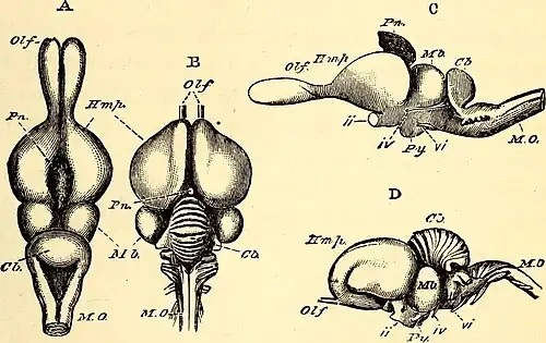 - ^ a b c Nieuwenhuys, R; Donkelaar, HJ; Nicholson, C (1998). The Central Nervous System of Vertebrates, Volume 1. Springer. pp. 11–14. ISBN 978-3-540-56013-5.