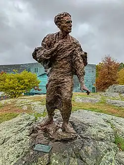 A nine-foot bronze statue of Justice Louis D. Brandeis is a campus landmark. The sculpture, created by sculptor Robert Berks, was unveiled in 1956 in honor of the 100th anniversary of Brandeis' birth.[64][65] Berks' wife Dorothy had been the Justice's personal assistant for 39 years and wore his actual robes to model the statue.[65]