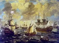 In 1672, the Franco-Dutch War broke out, with Brandenburg–Prussia involved as an ally of the Dutch Republic. This alliance was based on a treaty of 1669, and resulted in French occupation of Brandenburg–Prussian Cleves.[39] In June 1673, Frederick William abandoned the Dutch alliance and concluded a subsidy treaty with France, who in return withdrew from Cleves.[39] When the Holy Roman Empire declared war on France, a so-called Reichskrieg, Brandenburg–Prussia again changed sides and joined the imperial forces.[39] France pressured her ally Sweden to relieve her by attacking Brandenburg–Prussia from the north.[40] Charles XI of Sweden, dependent on French subsidies, reluctantly occupied the Brandenburgian Uckermark in 1674, starting the German theater of the Scanian War (Brandenburg–Swedish War).[40] Frederick William reacted promptly by marching his armies from the Rhine to northern Brandenburg, and encountered the rear of the Swedish army, which was in the process of crossing a swamp, in the Battle of Fehrbellin (1675).[41] Though a minor skirmish from a military perspective, Frederick William's victory turned out to be of huge symbolic significance.[42] The "Great Elector" started a counter-offensive, pursuing the retreating Swedish forces through Swedish Pomerania.[43]
