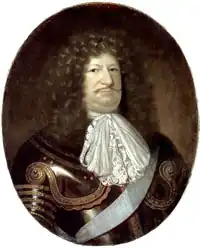 By 1678, Frederick William had cleared Swedish Pomerania and occupied most of it, with the exception of Rügen which was held by Denmark–Norway.[43] This was followed by another success against Sweden, when Frederick William cleared Prussia of Swedish forces in what became known as the Great Sleigh Drive.[48] However, when Louis XIV of France concluded the Dutch War by the Nijmegen treaties, he marched his armies east to relieve his Swedish ally, and forced Frederick William to basically return to the status quo ante bellum by the Treaty of Saint-Germain-en-Laye (1679).[39] Though the Scanian War resulted only in minor territorial gains, attaching a small strip of the Swedish Pomeranian right bank of the lower Oder to Brandenburg–Prussian Pomerania, the war resulted in a huge gain of prestige for the elector.[41]