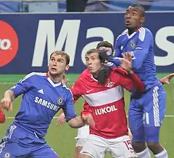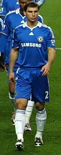 On 15 January 2008, English Premier League side Chelsea confirmed that the club had agreed terms with Lokomotiv for Ivanović's transfer, subject to the agreement of personal terms and the passing of a medical, having beaten competition from the likes of Milan, Ajax, Juventus and Internazionale for his signature.[10] Though the transfer fee was undisclosed, it was speculated to be in the £9 million range.[11] Lokomotiv later announced the transfer fee was €13 million (£9.7 million) and according to the club, the transfer was the largest in Russian football history.[12] Ivanović signed a three-and-a-half-year contract with Chelsea the following day, where he was given the number 2 shirt last worn by Glen Johnson.[13]