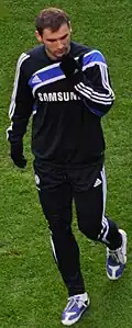 He scored his first goal for Chelsea against Liverpool in the first leg of the Champions League quarter-final at Anfield. Later on in the contest, he went on to score a second goal, which like his first was a header off a corner. These two goals proved to be decisive, as Chelsea left Anfield leading 1–3 on aggregate, and would go on to win the tie by two goals with an aggregate score of 7–5.[20] Ivanović's two goals also earned him a regular starting place for the time being in Guus Hiddink's side, as well as making him an instant fan favourite among Chelsea supporters with the nickname Branislav "two goal' Ivanović announced before games.[21] Nonetheless, by the end of the season, Hiddink relegated Ivanović back to the bench after Champions League semi-final first leg at Barcelona, meaning that he did not play in the second leg, and he also sat out the FA Cup final.[22]