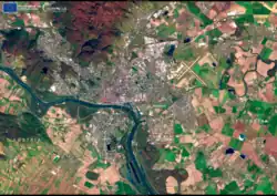 The city has a total area of 367.66 square kilometres (142.0 sq mi),[91] making it the second-largest city in Slovakia by area (after the township of Vysoké Tatry).[92] Bratislava straddles the Danube, along which it had developed and for centuries the chief transportation route to other areas. The river passes through the city from the west to the southeast. The Middle Danube basin begins at Devín Gate in western Bratislava. Other rivers are the Morava River, which forms the northwestern border of the city and enters the Danube at Devín, the Little Danube, and the Vydrica, which enters the Danube in the borough of Karlova Ves.
